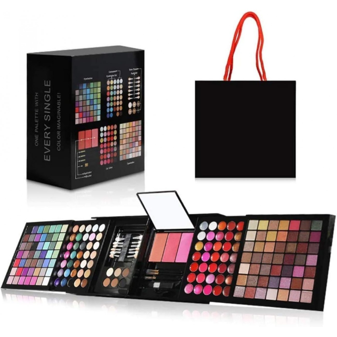 - 100% 全新高品质: 本化妆包包括 119 个眼影,35 个唇膏,3 个腮红,6 个阴影粉,14 个遮瑕膏,10 个涂抹器。如果您因任何原因不满意,请联系我们,我们将立即全额退款或更换新产品。